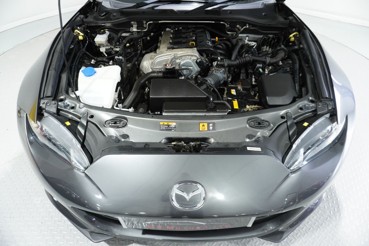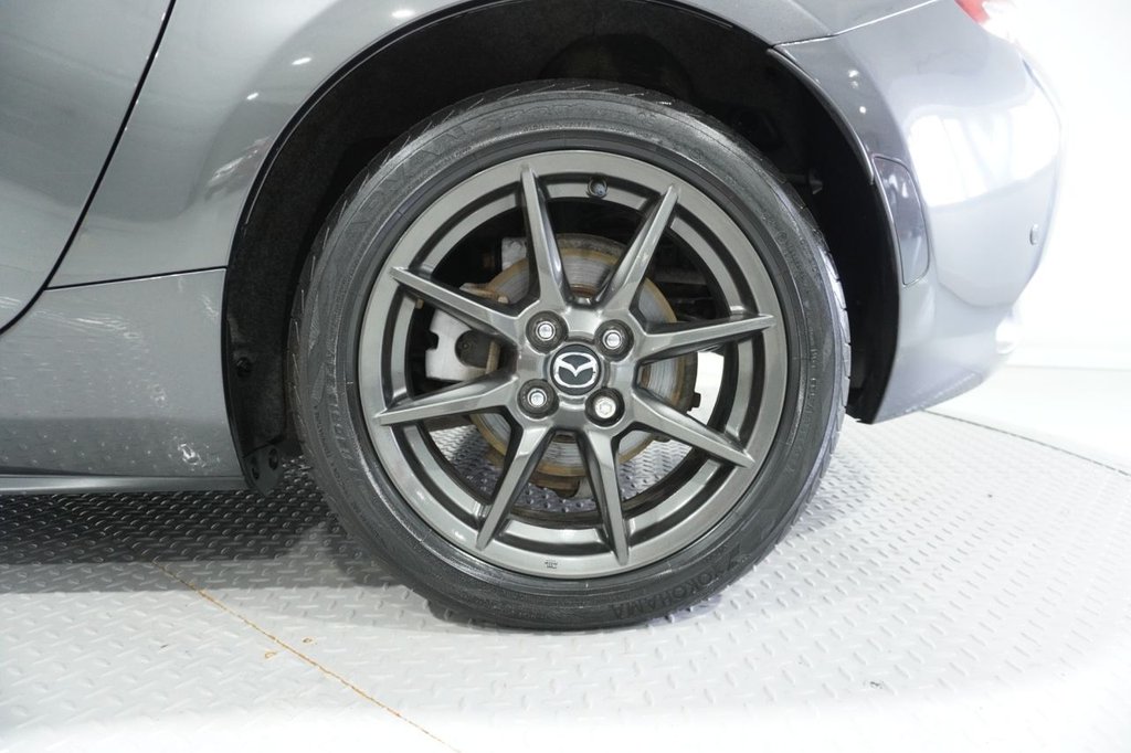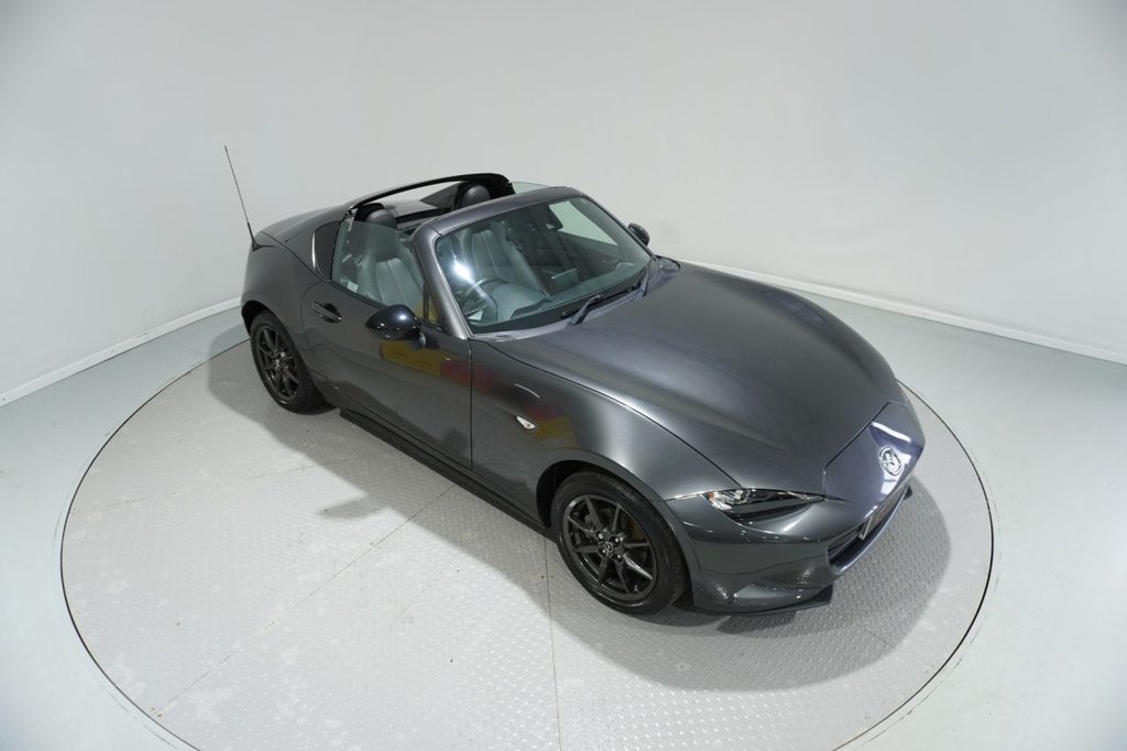 FINISHED IN STUNNING MACHINE GREY WITH PREMIUM BLACK LEATHER SPORTS SEATS AND 16 INCH GUNMETAL ALLOY WHEELS, THIS LEGENDARY SPORTS CAR IS NOT ONLY FANTASTIC VALUE FOR MONEY BUT LOOKS AND DRIVES INCREDIBLE TOO. EQUIPPED WITH MAZDA'S INNOVATIVE 1.5-LITER SKYACTIV-G NATURALLY ASPIRATED PETROL ENGINE PRODUCING 131 PS, DESIGNED TO DELIVER PURE DRIVING ENJOYMENT ALONG WITH IMPRESSIVE FUEL EFFICIENCY. PAIRED WITH A SLICK-SHIFTING 6-SPEED MANUAL TRANSMISSION, THIS DRIVETRAIN PROVIDES ONE OF THE MOST ENGAGING AND CONNECTED DRIVING EXPERIENCES AVAILABLE AT ANY PRICE POINT. THE HIGH-REVVING NATURALLY ASPIRATED ENGINE IS PERFECTLY MATCHED TO THE LIGHTWEIGHT CHASSIS, OFFERING RESPONSIVE THROTTLE CONTROL AND A DELIGHTFUL ENGINE NOTE THAT ENCOURAGES YOU TO EXPLORE THE UPPER REACHES OF THE REV RANGE. DESPITE ITS SPORTING CREDENTIALS, THIS EURO 6 COMPLIANT ENGINE RETURNS EXCELLENT FUEL ECONOMY FIGURES OF AROUND 45 MPG COMBINED, MAKING THIS MX-5 AS PRACTICAL FOR EVERYDAY USE AS IT IS THRILLING ON YOUR FAVORITE BACK ROADS.