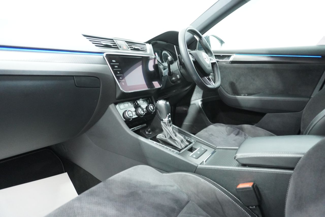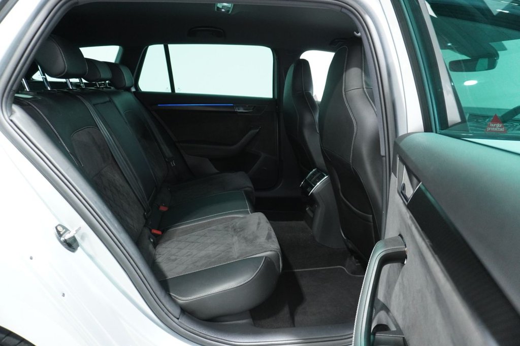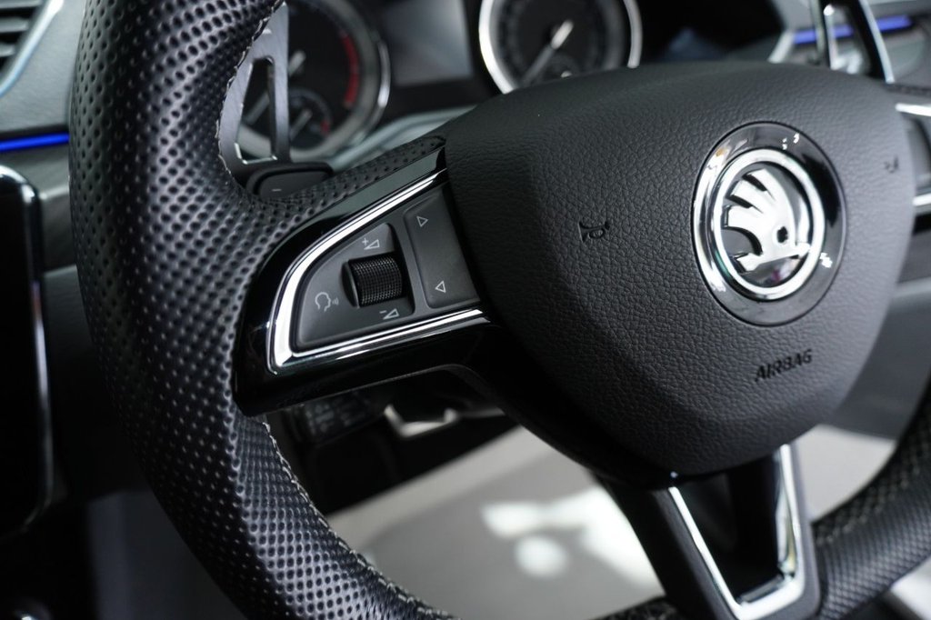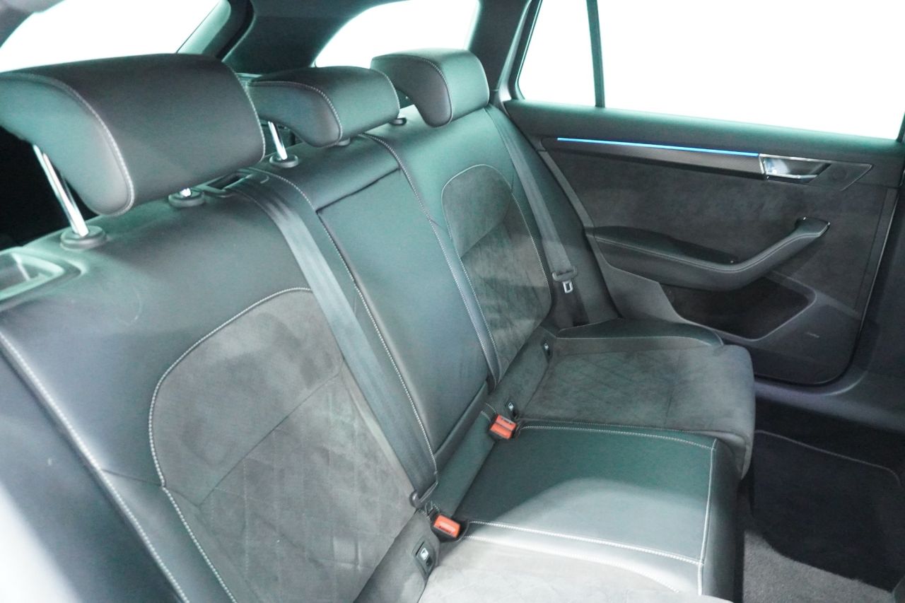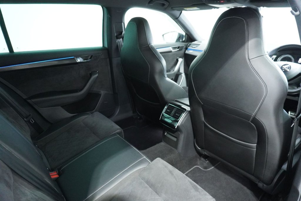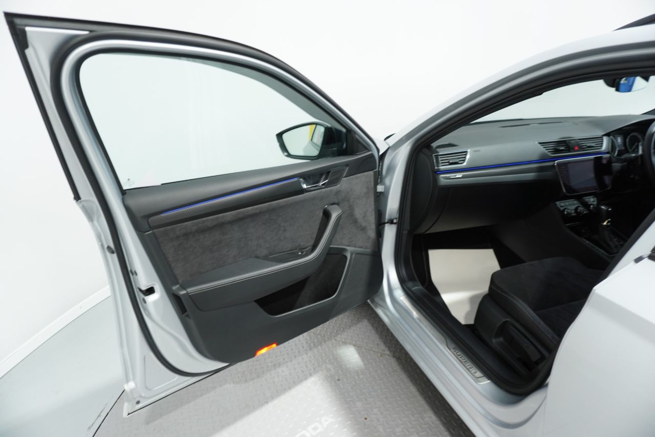 FINISHED IN EYE-CATCHING BRILLIANT SILVER WITH BLACK ALCANTARA & LEATHER-TRIMMED SPORT SEATS, PRIVACY GLASS AND BLACK STYLING PACK, THIS SUPERB SPORTLINE PLUS COMBINES BOLD STYLING WITH EXECUTIVE COMFORT AND FAMILY-FRIENDLY PRACTICALITY. POWERED BY SKODA'S EFFICIENT 1.5-LITRE TSI PETROL ENGINE PRODUCING 150 PS AND MATED TO A SMOOTH DSG AUTOMATIC GEARBOX, THIS SUPERB OFFERS A REFINED AND RESPONSIVE DRIVE—IDEAL FOR MOTORWAY MILES OR URBAN COMMUTING. THE ACTIVE CYLINDER TECHNOLOGY (ACT) HELPS REDUCE FUEL CONSUMPTION WITHOUT SACRIFICING PERFORMANCE.