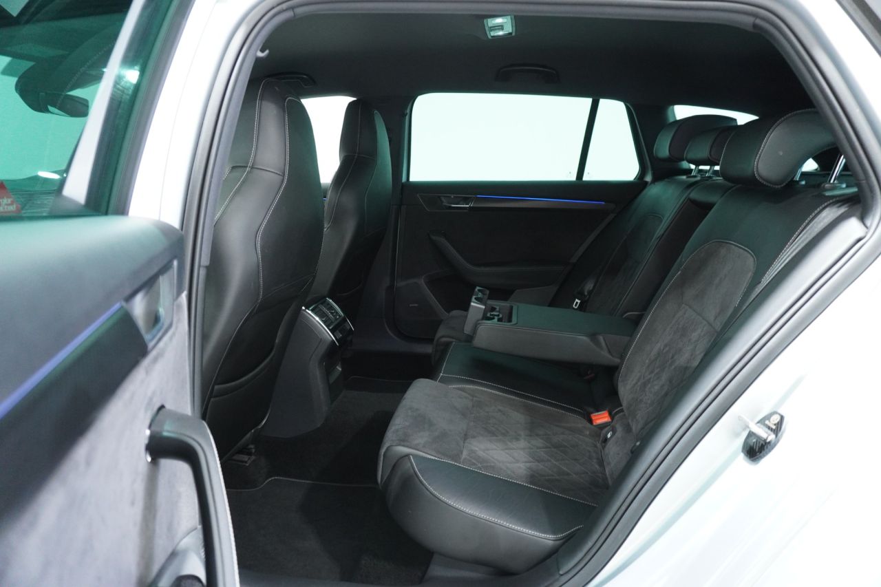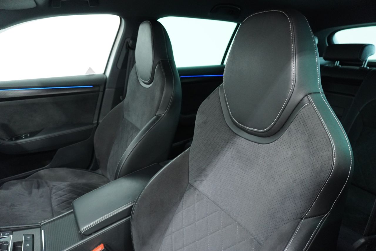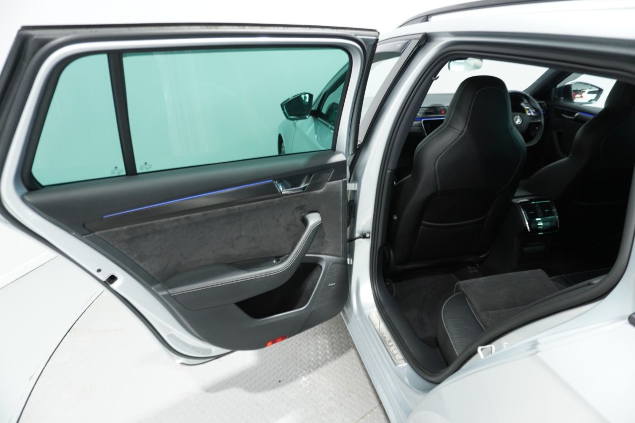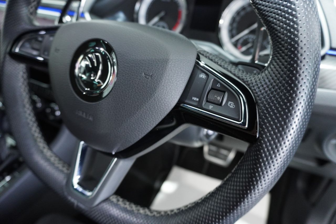 FINISHED IN EYE-CATCHING BRILLIANT SILVER WITH BLACK ALCANTARA & LEATHER-TRIMMED SPORT SEATS, PRIVACY GLASS AND BLACK STYLING PACK, THIS SUPERB SPORTLINE PLUS COMBINES BOLD STYLING WITH EXECUTIVE COMFORT AND FAMILY-FRIENDLY PRACTICALITY. POWERED BY SKODA'S EFFICIENT 1.5-LITRE TSI PETROL ENGINE PRODUCING 150 PS AND MATED TO A SMOOTH DSG AUTOMATIC GEARBOX, THIS SUPERB OFFERS A REFINED AND RESPONSIVE DRIVE—IDEAL FOR MOTORWAY MILES OR URBAN COMMUTING. THE ACTIVE CYLINDER TECHNOLOGY (ACT) HELPS REDUCE FUEL CONSUMPTION WITHOUT SACRIFICING PERFORMANCE.